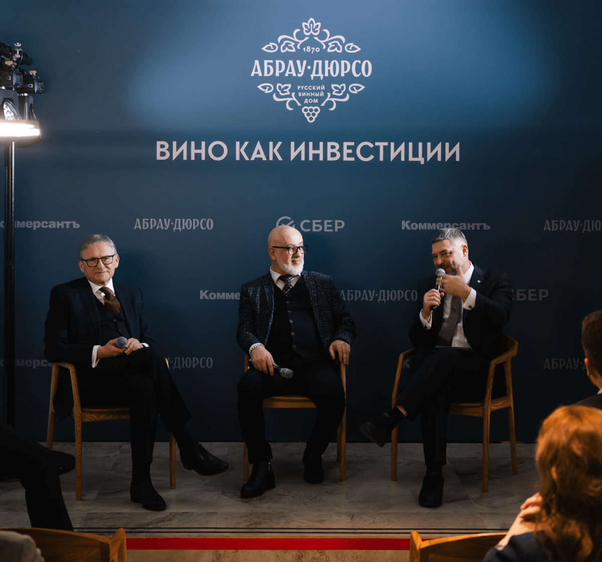 Центральной темой вечера стал вопрос о превращении редких, элитных вин из предмета коллекционирования в полноценный инвестиционный инструмент. В дискуссии приняли участие основной акционер ГК «Абрау-Дюрсо» Борис Титов, председатель Союза сомелье и экспертов России, партнер РБК Артур Саркисян и директор дивизиона «Транзакционный бизнес» Сбера Сергей Попов. Беседу вел Олег Богданов («Коммерсантъ FM»).