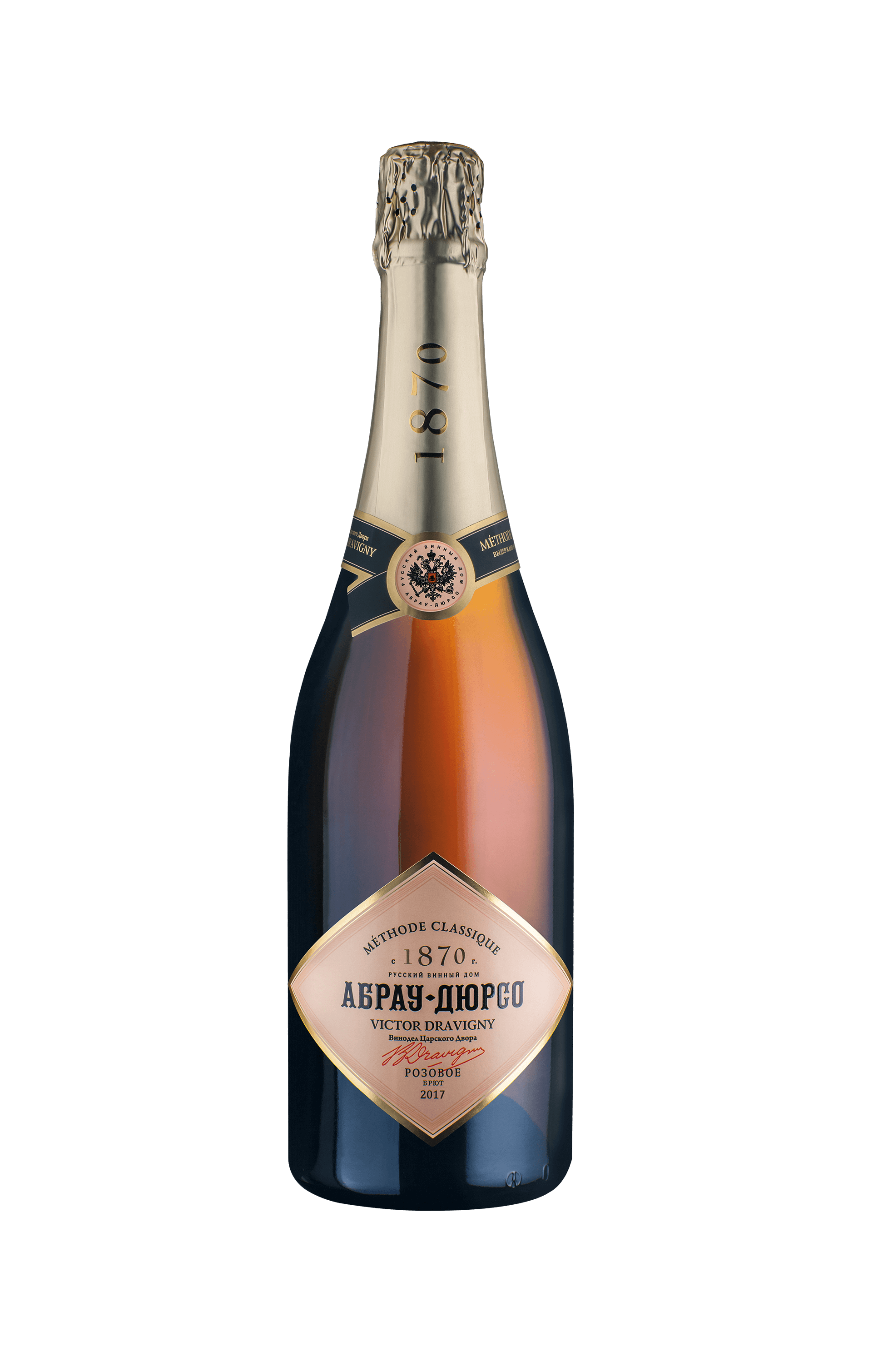 Розовый брют из коллекции Victor Dravigny, созданный из ассамбляжа классических европейских сортов: «шардоне», «пино-нуар», «пино-фран». Игристое вино имеет редкий по красоте лососевый оттенок с коралловым отблеском, устойчивым муссом и элегантным перляжем.